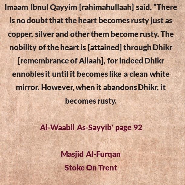 Hearts Become Rusty In The Absence of Dhikr [Remembrance of Allaah] See link: http://www.salaficentre.com/2017/05/remembrance-allaah-gratitude-imaam-ibnul-qayyim/